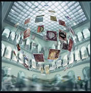 RETROSPEKTIVE wolfgang schiffling Kosmische FlugblätterInstallation einer Bilderkugel aus 100 Leinwänden Wandzeitung: Texte aus dem Projektbericht Beispiel: Jürgen Hoffmann: |